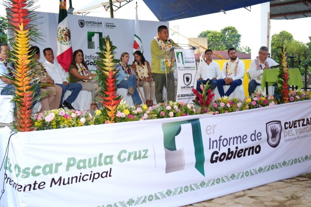 Cuetzalan, Pue. – El presidente municipal Oscar Paula Cruz presentó su primer Informe de Gobierno en la cabecera municipal de Cuetzalan, destacando los logros más importantes de su administración en áreas clave como seguridad, obra pública, turismo y transparencia.